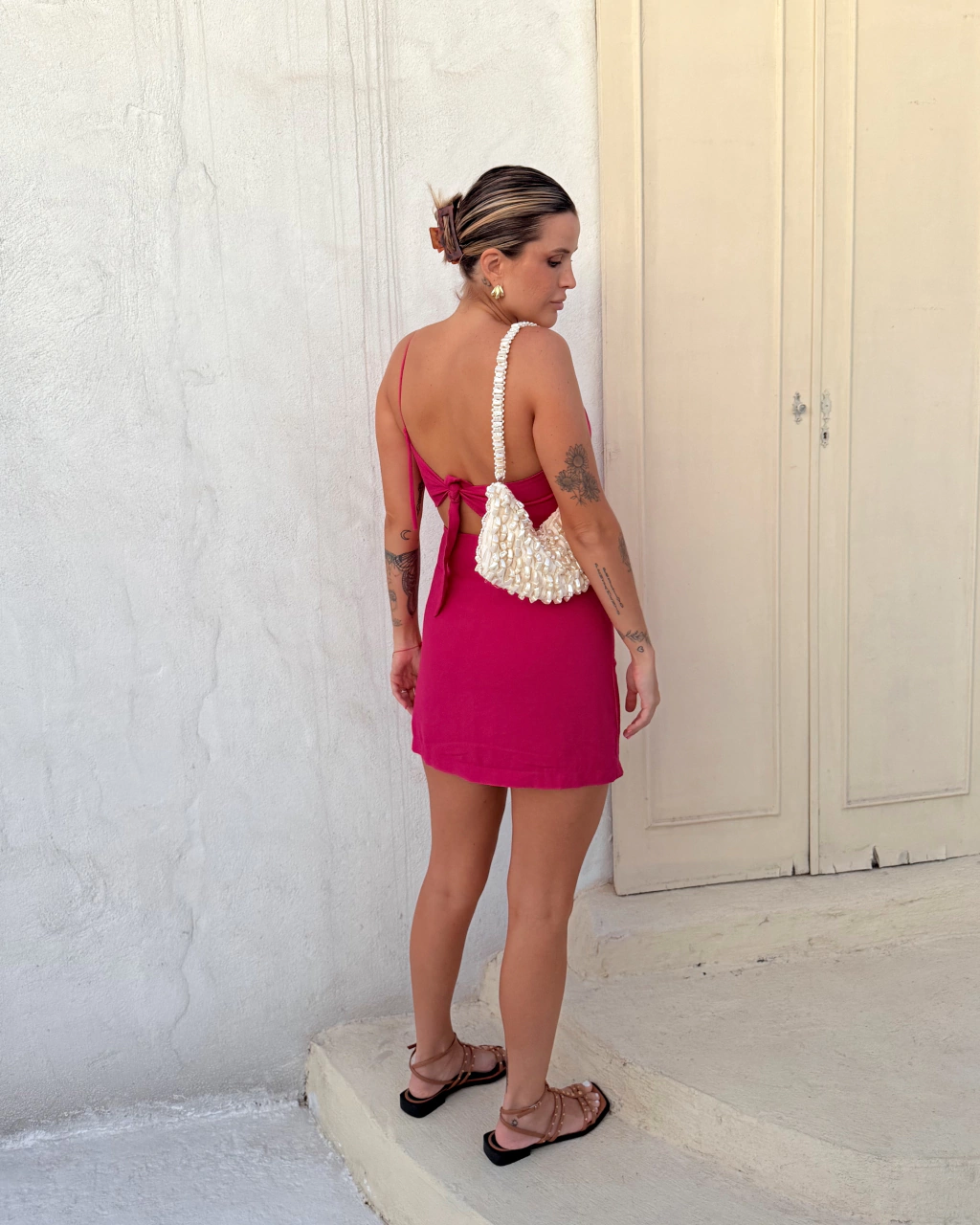 A saia Coolie Gaia é bem cintura alta e tem o caimento ajustado ao corpo. Seu recorte na lateral é um detalhe mais discreto, mas que traz um design moderno e sexy. Possui zíper invisível na lateral e forro em shortinhos interno. É a peça ideal para o verão, principalmente quando combinada com o nosso Cropped Coolie Gaia.