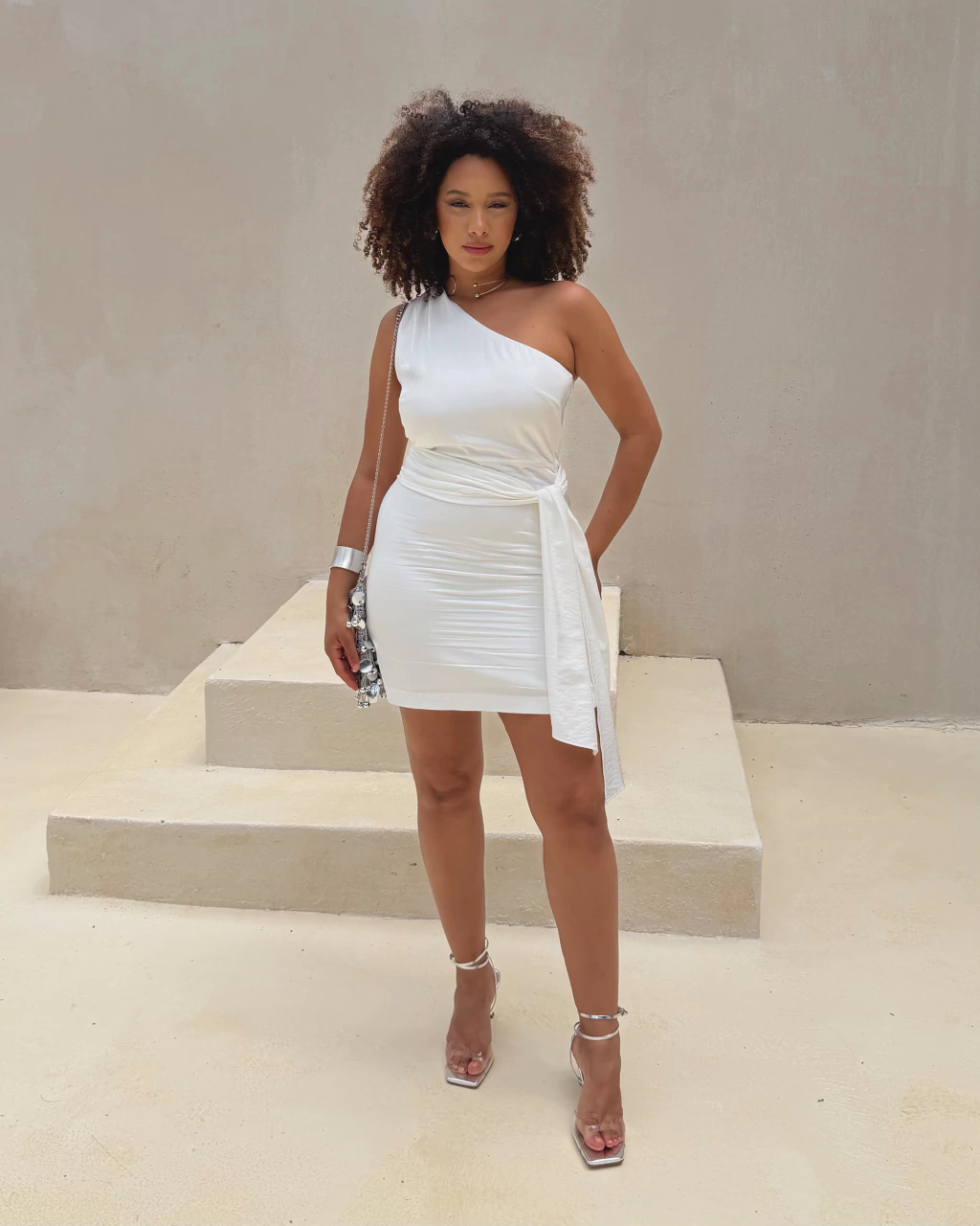 Observações: Contém forro no comprimento todo e zíper invísivel na lateral, faixa de amarração solta na lateral.