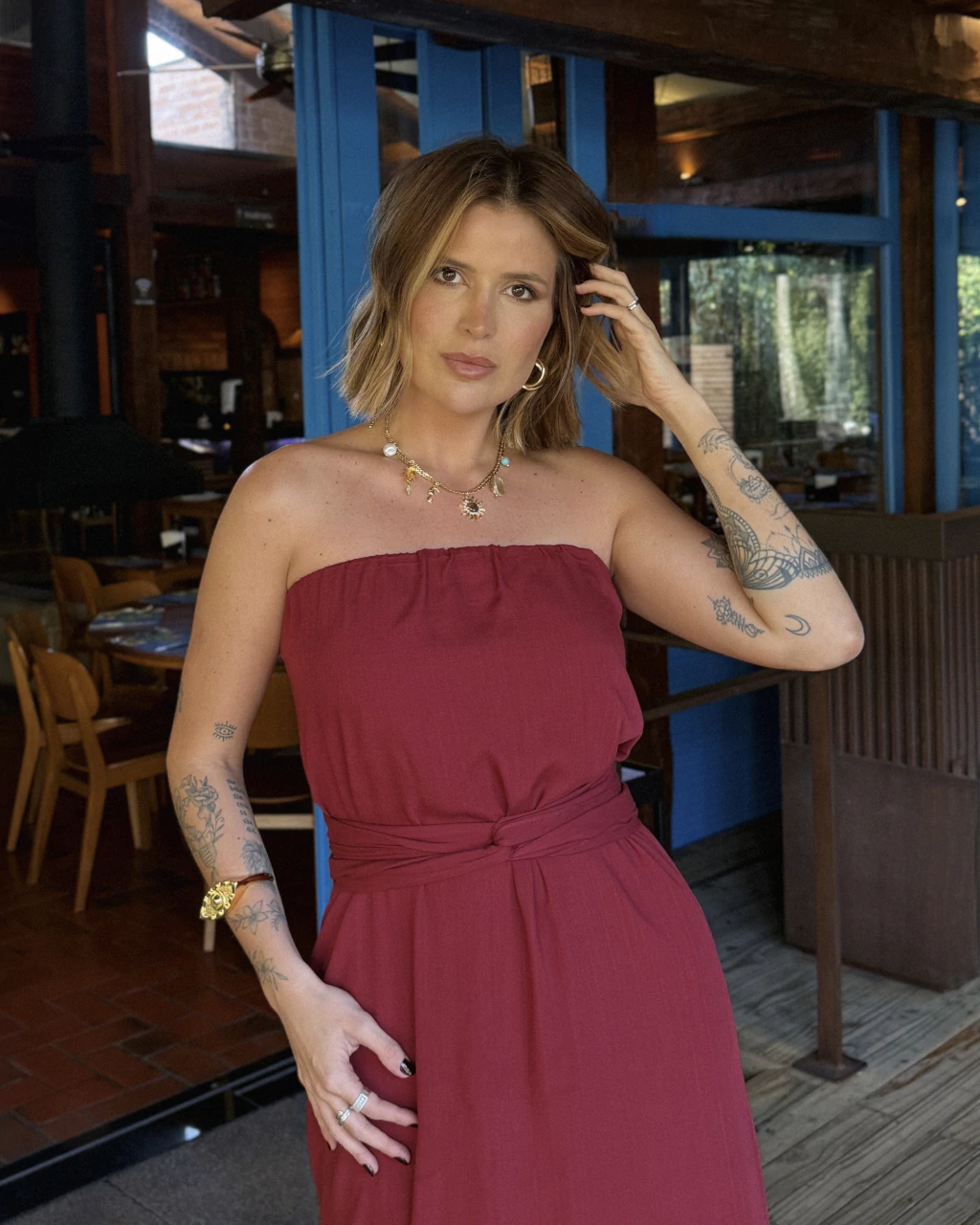 Observações: Confeccionado com forro até o joelho e possui elastico no busto.